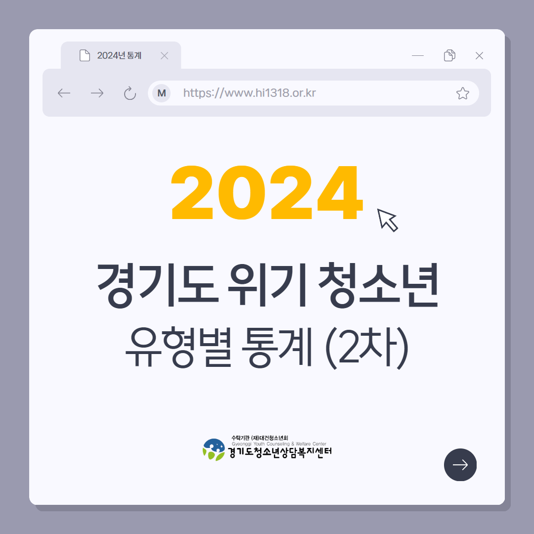 사이트 전체메뉴 센터안내 인사말 운영법인 경영목표 연혁 조직도 오시는길 센터 캐릭터 소개 상담안내 청소년상담 전화상담 심리검사 사이버상담 사업안내 위기청소년 심리상담 대면상담 화상상담 찾아가는 상담 청소년전화 1388 위기청소년맞춤형대응체계강화 자살자해 집중 클리닉 후기청소년심리지원 프로그램 상처제거 지원사업 디지털미디어 피해 청소년 회복지원 사업 청소년폭력 예방 또래상담 촘촘한 청소년안전망 가동 심리적외상 긴급지원단 운영 e-청소년안전망 「채움」 청소년안전망 구축 및 운영 전문역량 강화 종사자 교육연수 상담 프로그램 개발 및 보급 청소년상담복지센터운영활성화 청소년상담복지센터 컨설팅, 간담회 종사자 소진관리 교육신청 교육과정 교육신청 커뮤니티 공지사항 자료실 FAQ 자료실 센터 발간물 청소년통계 청소년백서 유관기관 소식 지역별 청소년상담복지센터 건의사항 알림마당 공지사항 채용공고 카드뉴스 포토뉴스 보도자료 예산/결산자료 닫기>