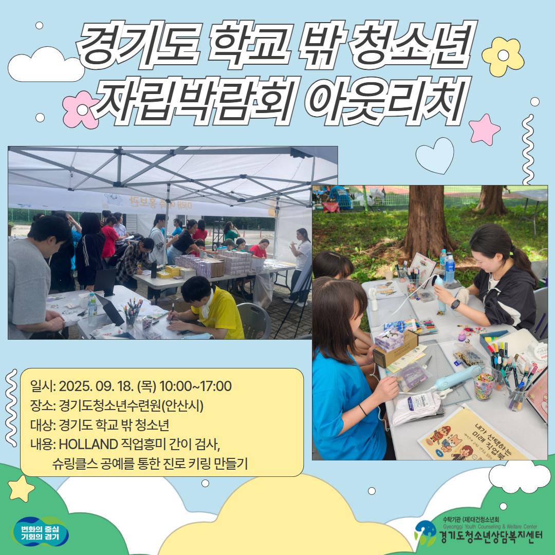 지난주 목요일 경기도청소년수련원에서 학교 밖 청소년을 대상으로 자립박람회가 진행되었어요!