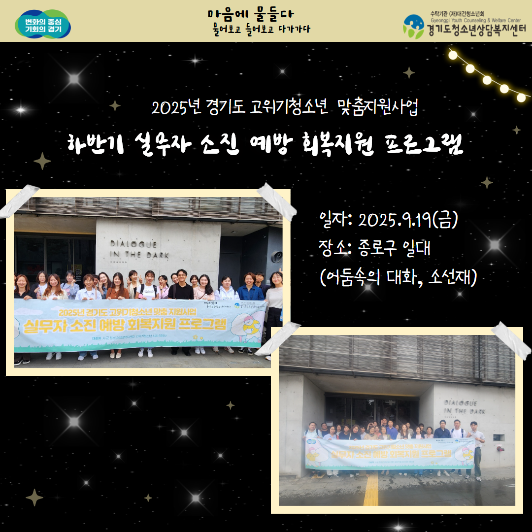 지난 9월 19일, 경기도 내 고위기청소년을 상담하는 상담사 선생님들을 대상으로 실무자 소진예방 프로그램이 진행되었습니다.